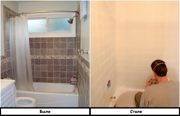 Конечно, идеальным решением было бы снять старую плитку и уложить вместо нее новую, но тогда количество нулей в чеке будет приличным. Если вы не готовы к таким расходам, а также к тому, что не сможете минимум неделю пользоваться ванной, предлагаем воспользоваться более бюджетным решением. Просто покрасьте кафель в тот цвет, который вам нравится. Чтобы это сделать, придется пройти несколько этапов:
