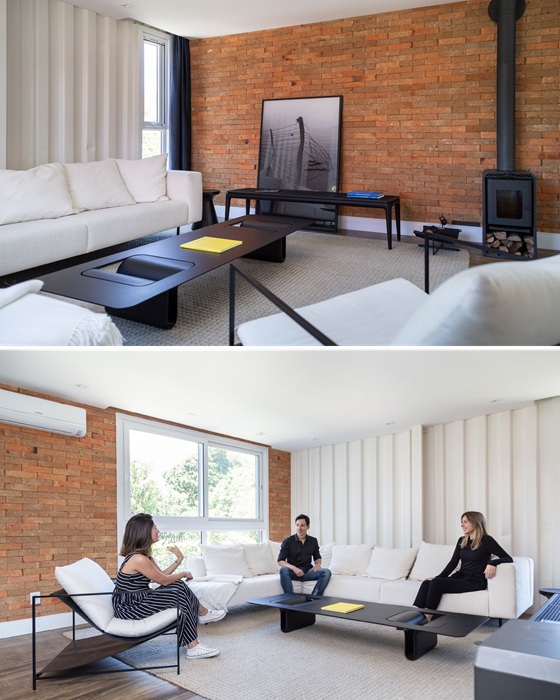 В кирпичной пристройке организовали гостиную (Container House RD, Бразилия).