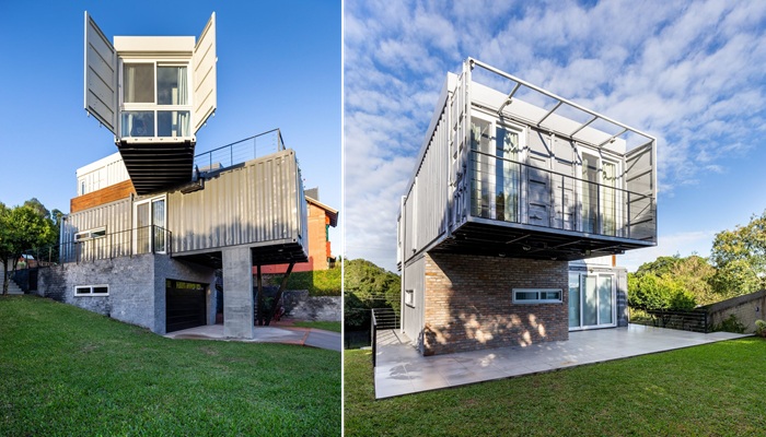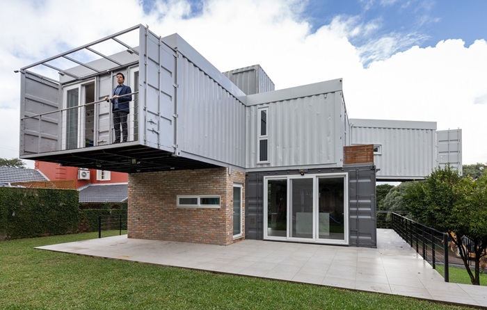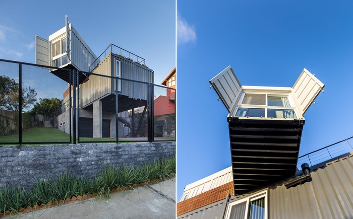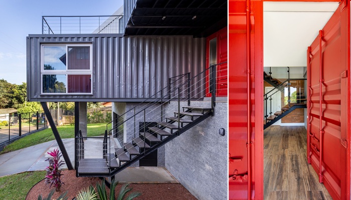 Креативный мастер по металлу не прогадал, построив дом из грузовых контейнеров (Container House RD, Бразилия). | Фото: archello.com.