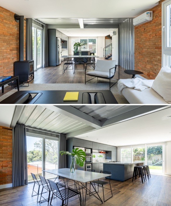 Зона столовой-кухни соседствует с гостиной (Container House RD, Бразилия). | Фото: archdaily.com.br.