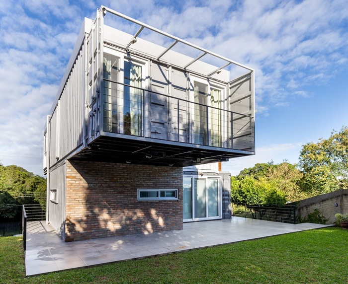 Все эти выгоды просчитал предприимчивый мастер по металлу из Бразилии, который задумал строительство современного и вместительного дома необычной конфигурации. Молодой человек предпочел вложить больше средств в покупку земли на склоне холма в Порту-Алегри, на одной из самых высоких точек города откуда открываются потрясающие виды на живописный природный ландшафт, нежели тратиться на необоснованно дорогой традиционный материал. А вот на самом строительстве сэкономить, ведь за основу он взял списанные грузовые контейнеры, которых в их регионе было предостаточно, да еще и по бросовой цене. Хотя без участия команды профессионалов из компании KS Arquitetos все-таки не обошлось, но с ними будущий домовладелец тесно сотрудничал, он занимался проектными и строительными работами наравне с архитекторами и бригадой.