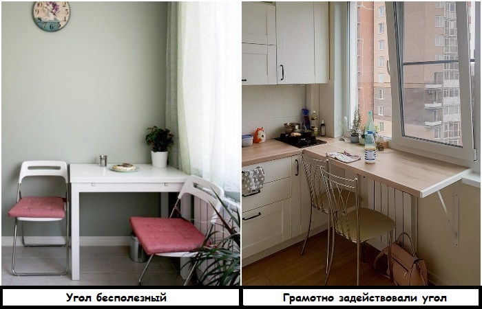 Вместо установки полноценного стола используйте подоконник