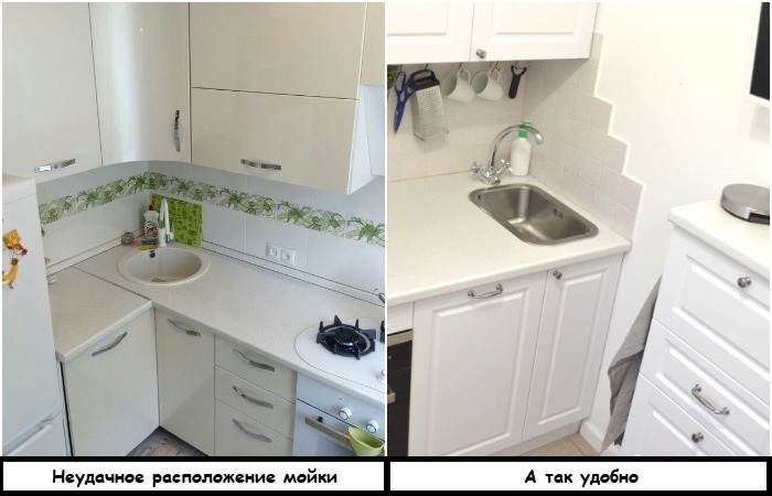 Удобнее, когда раковина находится рядом с холодильником