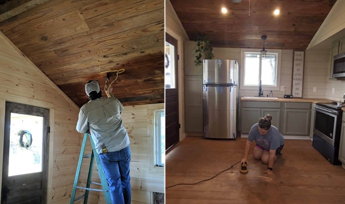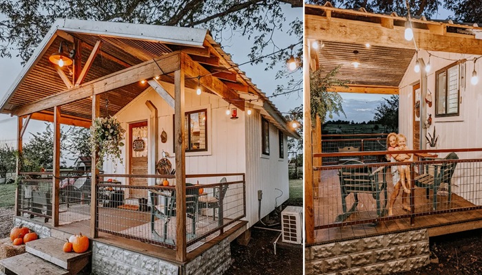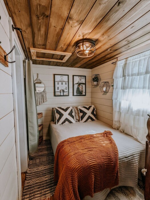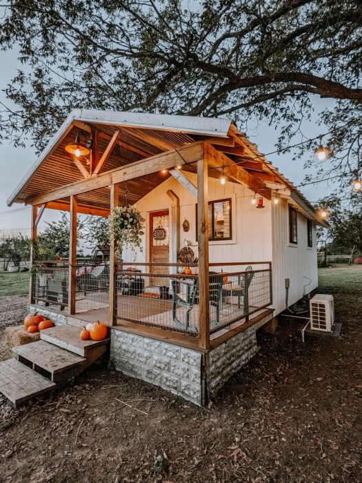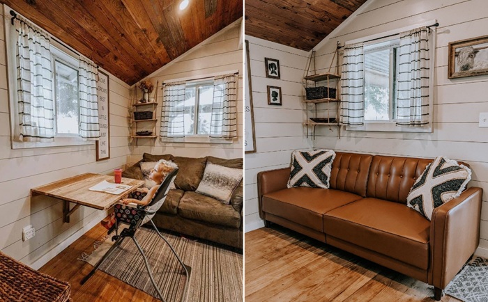 Примечательно: Каждый уголок и каждая деталь этого крошечного дома отражает личный подход Кэти и Майкла к организации своего первого семейного гнездышка, которое они планируют со временем расширить. Но пока это только в мечтах, а в то время им пришлось активно работать, чтобы как можно скорее въехать в собственное жилище. Супругам нужно было не только полностью переоборудовать сарай, но и подвезти коммуникации, включая электричество, что увеличило затраты. По окончании всех преобразований, которые заняли долгих 9 месяцев, семья подсчитала расходы и была приятно удивлена, что вместо запланированных 20 тыс. долларов они потратили около 16. Сэкономленные средства пошли на облагораживание территории.