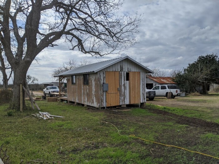 По этому пути пошли супруги Кэти и Майкл Кребс, которые долго ломали голову над тем, как обзавестись собственным домиком, чтобы избавиться от арендной платы, «съедающей» значительную часть семейного бюджета. Последней каплей стали ограничения во время пандемии COVID-19, которые значительно осложнили ситуацию в семье. Именно в тот момент Майкл от дедушки и бабушки получил в наследство 28 га земли в Фейетвилле, что в штате Техас. Только вот из построек на сугубо сельхозугодьях достался только обветшалый сарай, который хоть как-то мог бы заинтересовать в качестве объекта трансформации. Это обстоятельство совсем не огорчило пару, а лишь подстегнуло их желание кардинально поменять свою жизнь.