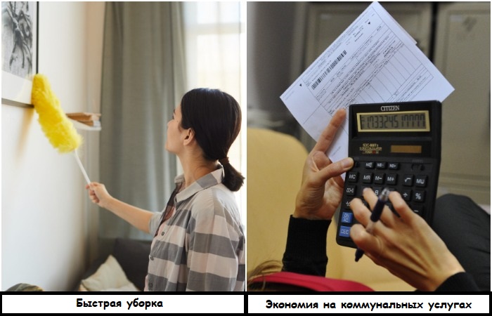 • Быстрая уборка. Чем меньше квартира, тем проще поддерживать в ней порядок. Обычно получаса хватает для того, чтобы протереть пыль, вымыть пол и разложить вещи по местам. Это особенно удобно, когда возникают ситуации из серии «гости на пороге».