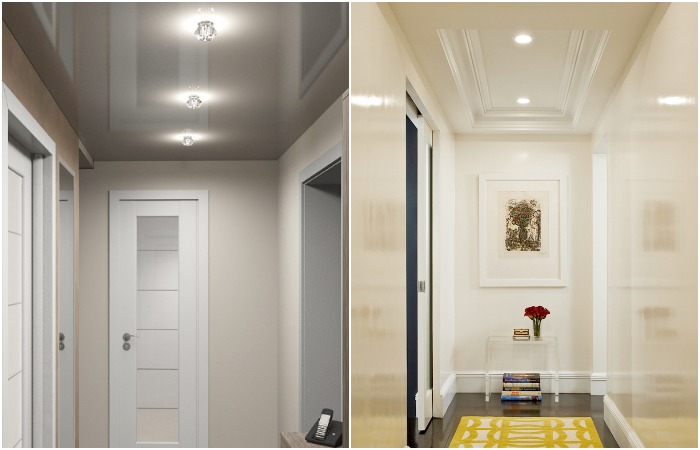 Хотите создать иллюзию большего пространства? Тогда обратитесь за помощью к глянцевым поверхностям, которые отражают свет. Варианты могут быть самыми разными: плитка на полу, краска на стенах с ненавязчивым глянцевым финишем, мебельные фасады. Еще один вариант – глянцевый натяжной потолок светлого оттенка. Сейчас все больше дизайнеров стараются отойти от него в сторону матовых конструкций, которые смотрятся более стильно, но в случае с узкой комнатой выбирать не приходится, плюс важно правильно расставлять приоритеты.
