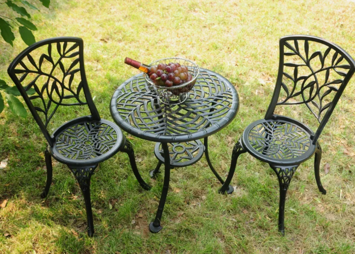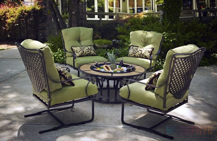 Французский железный стул тоже не подойдёт для комфортного времяпрепровождения, хотя ему красоты и эстетики не занимать. Вместе с похожим столом в саду под лианой такая композиция может внушить комфорт и возможность приятного отдыха. Они будут смотреться лучше пластиковых, но сидеть на них будет прохладно даже летом, если стулья располагаются в тени. К тому же краска с железа, постоянно находящегося на улице, в скором времени начнёт слезать. Убирать их на зиму тоже не самый простой вариант, ибо весит такая мебель прилично. В целом они не стоят своих денег, если нет желания следить за железом постоянно и очень тщательно. А вообще такая мебель красиво смотрится исключительно на картинках или в садах музейных особняков, где за ней следят садовники.