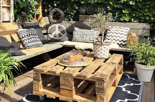 Интересный вариант мебели и главное бюджетный, но дело в том, что даже паллеты стоят денег. Одно дело, когда они уже завалялись на участке после ремонтных работ, например, а вот если нет, их ещё нужно найти, купить и довести до дачи. Вряд ли это удастся сделать на своём легковом автомобиле. Такая мебель может выглядеть даже более стильно и интересно, чем тёмная из искусственного ротанга и особенно покрашенная и задекорированная текстилем, но только если сделана она будет качественно. Не так уж и просто сделать её самому, нужна хорошая и проверенная на деле инструкция, плюс к этому дорогие строительные, дополнительные инструменты.