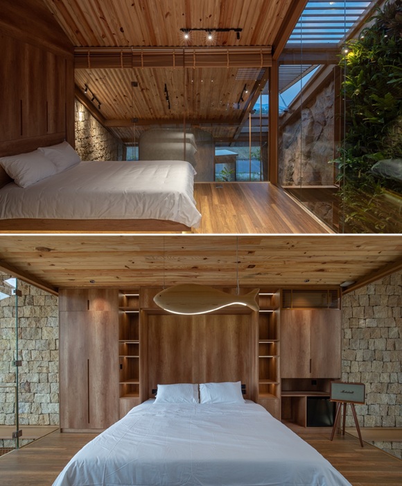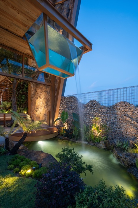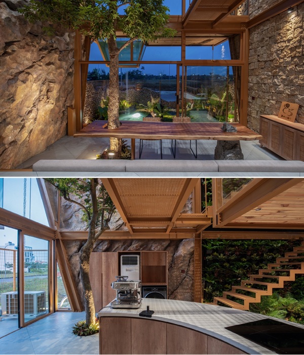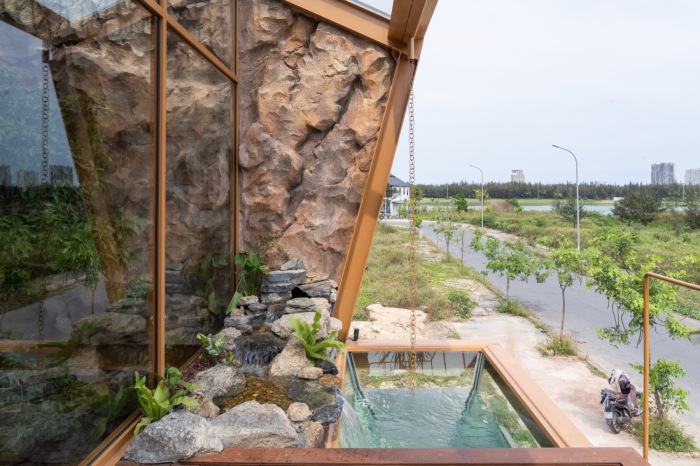 Вода из рукотворного озерца поступает в аквариум (Ga.o House). | Фото: cafeland.vn.