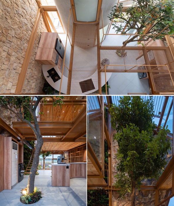 В интерьере можно увидеть и взрослые деревья (Ga.o House).