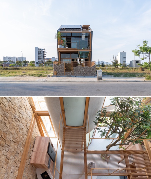 Жизнь в сложных климатических условиях толкает архитекторов на создание проектов жилищ и офисных зданий, где безопасность и комфортный микроклимат являются приоритетными. Особенно много интересных объектов можно встретить в крупных городах Юго-Восточной Азии, где климат отличается высокой влажностью и температурой. Не стал исключением и Вьетнам, власти которого взяли курс на устойчивость во всех отраслях и архитектуре, в том числе. В рамках экологичного видения городской жизни совсем недавно появился удивительный проект, который реализовали специалисты студии 85 Design для жителя Дананга, расположенного в тропическом регионе Хоа Хайин. При этом им удалось разработать поистине амбициозный проект гибридного строительства, который станет примером для будущих экспериментов, нацеленных на идеальный баланс эстетики, функциональности, комфорта и экологичности в архитектуре переполненных городов.