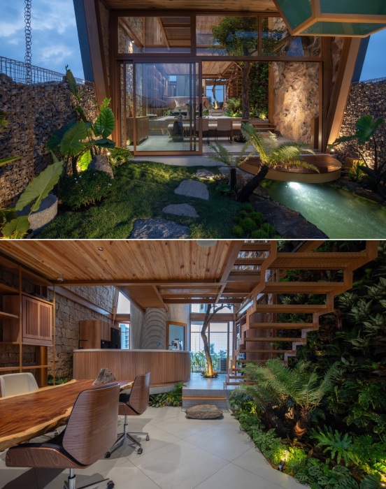 Стеклянная крыша и панорамные окна обеспечивают солнечным светом растения (Ga.o House).