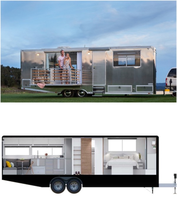 Поскольку в последние годы все больше людей предпочитает вести кочевой образ жизни, ведущие компании мира стараются создавать мобильные дома, максимально укомплектованные и комфортные, потому что современный человек уже не мыслит свою жизнь без бытовых благ. Не стала исключением и американская фирма Airstreams-Living Vehicle, которая 2 года занималась созданием уникального прицепа для кемпера, который сочетает в себе современный стильный дизайн, практические удобства и может использоваться в качестве полноценного жилья.