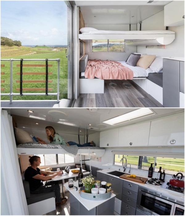 Ультрасовременная мебель с выдвижными системами станет надежным помощником в рациональной организации пространства (кемпер LV 2020). | Фото: dwell.com.