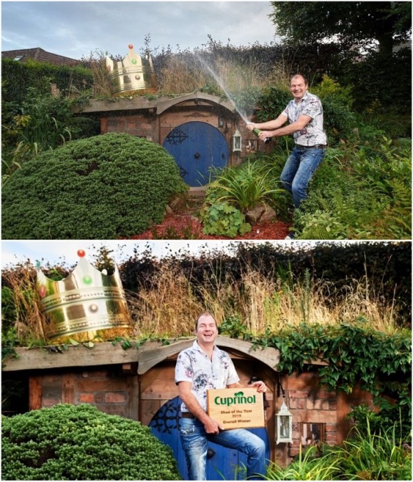 Победителю достался денежный приз, почетная деревянная табличка и гигантская корона, которая стала украшением его сарая (Chris Hield и его «Нора хоббита»). | Фото: budport.com.ua.