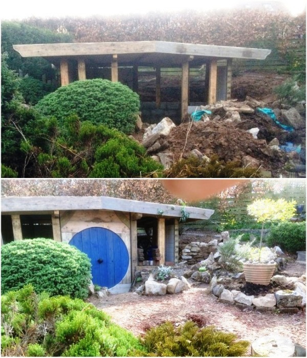 На создание «Норы хоббита» Chris Hield потратил 8 недель и всего лишь 620 дол. | Фото: shedblog.co.uk.
