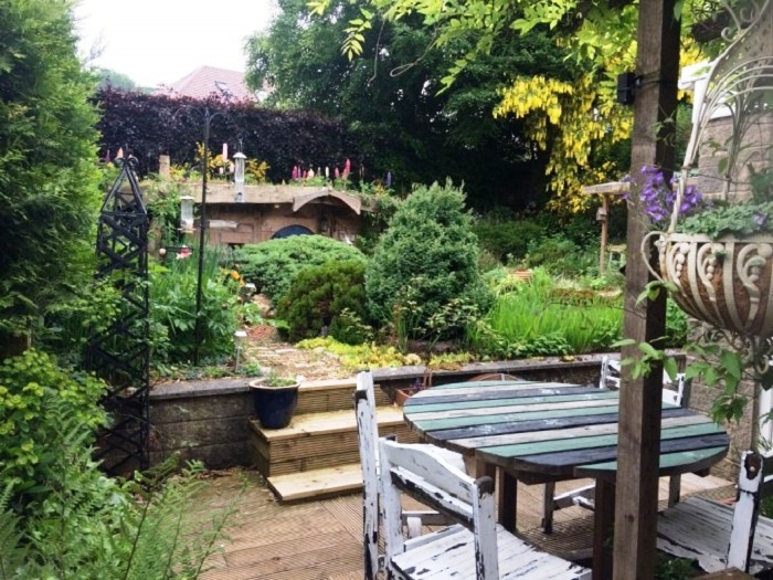 На территории приусадебного участка, который тоже оценивался судьями посажено много зелени и есть оригинальная беседка («Нора хоббита», Великобритания). | Фото: shedblog.co.uk.
