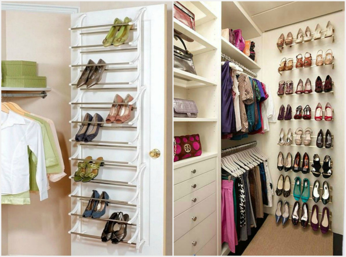 Рейлинги или трубы. | Фото: Одноклассники. Все ваши туфли можно зафиксировать на внутренней части двери шкафа с помощью тонких рейлингов или металлических труб.