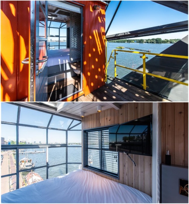С любой комнаты необычной резиденции открывается восхитительный вид на город или реку Эй (Yays Crane Apartment, Амстердам). | Фото: designstack.co.