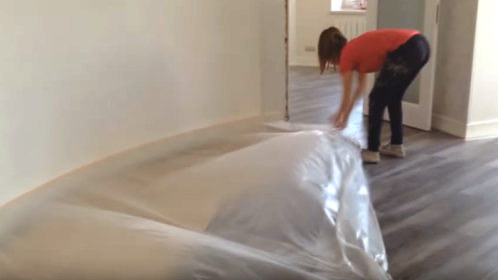 Чтобы не испортить напольное покрытие его нужно затянуть защитной пленкой. | Фото: youtube.com/ Анастасия Зайцева.