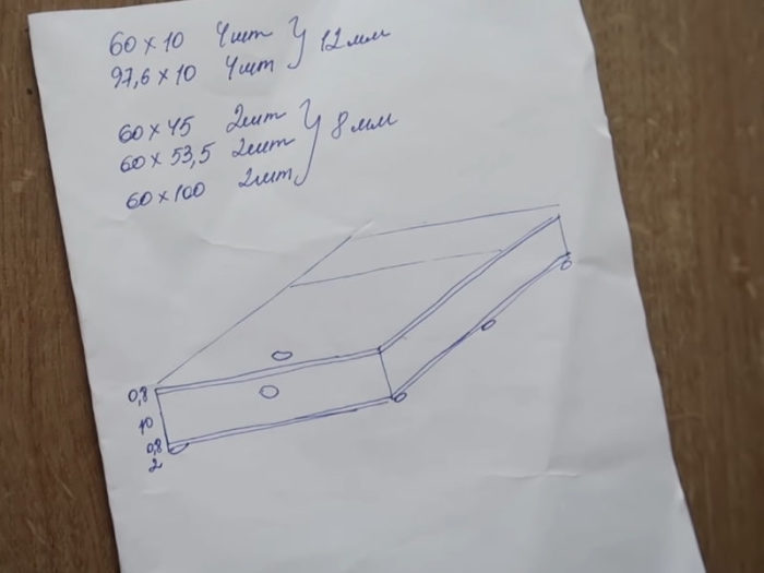 Для начала надо сделать чертеж ящиков. | Фото: samodelkino.info.
