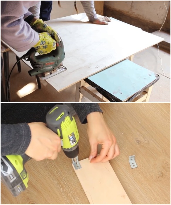 Фанеру нужно распилить с помощью электролобзика, зашкурить все элементы и собрать ящики. | Фото: youtube.com/ Bubenitta.