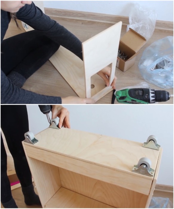Выдвижная прикроватная тумбочка собирается по такому же принципу, но с некоторыми нюансами. | Фото: youtube.com/ Bubenitta.