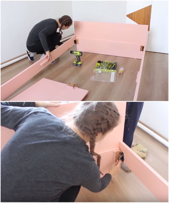 В сборке кровати Надежде помогала ее мама, потому что одному это делать очень сложно. | Фото: youtube.com/ Bubenitta.