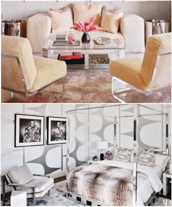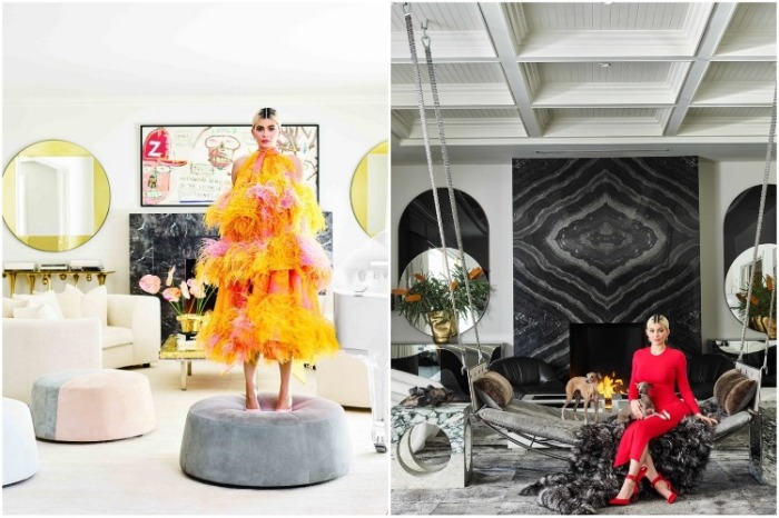 А вот пушистые ковры, сделанные из натуральной шерсти, альпаки и шелка, бархатная обивка, меховые покрывала и даже экстравагантные качели помогают создать особое домашнее тепло и уют. Несмотря на явную роскошь и гламурность, в ее доме «нет ничего ценного, на чем нельзя стоять, прыгать или танцевать», — комментирует дизайнер Мартин Лоренс-Буллард.