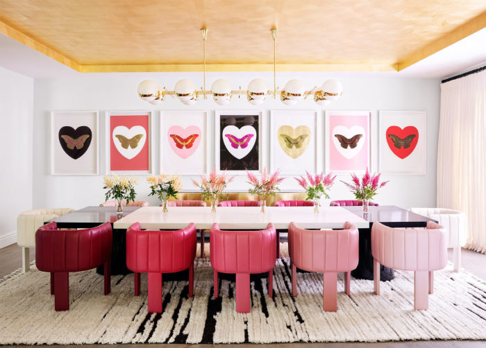Кресла в гостиной-столовой оформлены в том же цвете, что и тона губной помады из последней коллекции Kylie Cosmetics. | Фото: cosmopolitan.com.