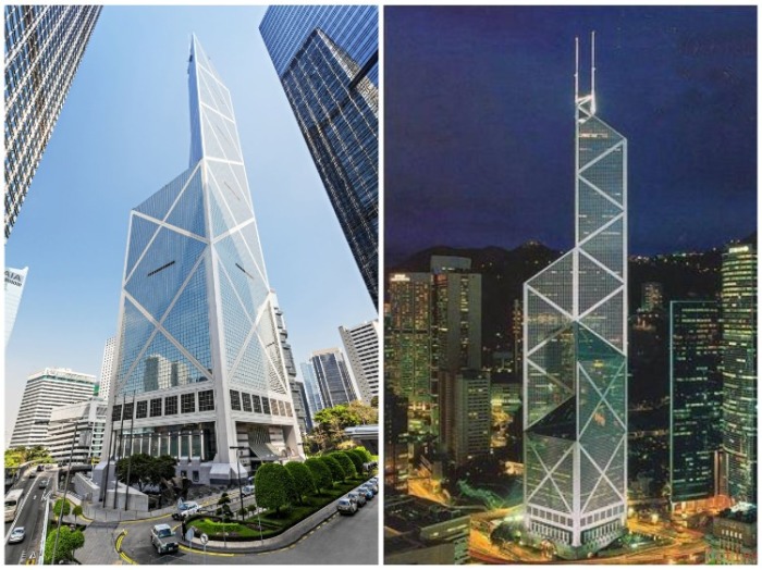 Башня Банка Китая (BOC Tower) – одна из самых узнаваемых высоток Гонконга стала знаменитой и популярной благодаря невероятной истории его проектирования и строительства. Еще на этапе создания концепта архитекторы решили отойти от традиций и построить небоскреб на свое усмотрение, предварительно не обсудив это с мастером по фэншую. Но такие вольности в Китае не проходят, потому что все застройщики должны беспрекословно придерживаться неписаных канонов градостроительства. Когда народ узнал, что произошло, начались настоящие волнения и протесты, поэтому главному архитектору Ионг Минг Пею пришлось пойти на уступки. Но поскольку строительство уже шло полным ходом, проект пришлось изменять в процессе возведения небоскреба. Вот поэтому форма 288 метровой башни изменялась от уровня к уровню, потому что резкое изменение проекта плачевно сказалось бы на безопасности строения.