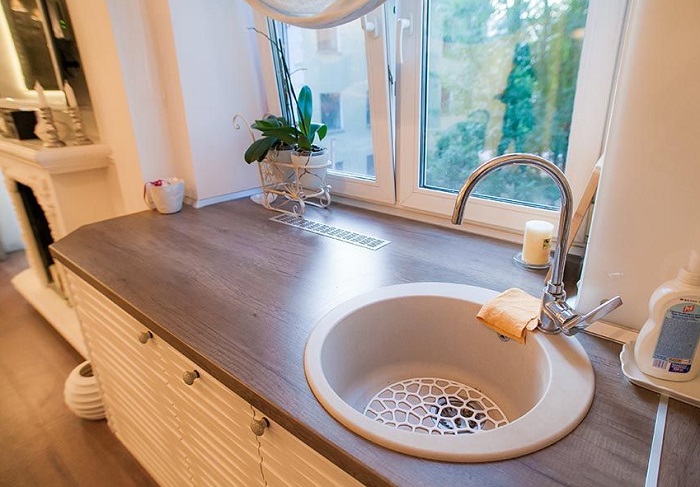Многие хозяйки думают, что мытье в раковине рук и посуды автоматически делает ее чистой. Увы, это не так – своими действиями вы добиваетесь абсолютно противоположного эффекта. Вы фактически оставляете бактерии и всевозможные загрязнения на стенках раковины. Если вы хотите, чтобы ваша кухня сверкала и нигде не оставалось ни следов от грязи, пыли и бактерий, используйте специальную меламиновую губку, которая поможет удалить загрязнения с раковины. По словам Керолайн Форте, чтобы добиться хорошего эффекта, после процедуры очищения нужно будет продезинфицировать мойку. Сделать это очень просто – следует закрыть слив, наполнить раковину теплой водой и добавить столовую ложку отбеливателя. Оставьте смесь на 5-10 минут, после чего смойте и вытрите насухо тряпкой.