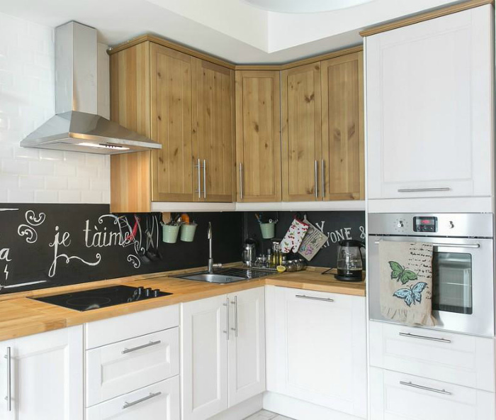 Кухня с грифельным фартуком. | Фото: tamriko.com.ua. По мнению Novate.ru, грифельный фартук - эта всегда отличная идея, если в интерьере не хватает живости и акцентных деталей.