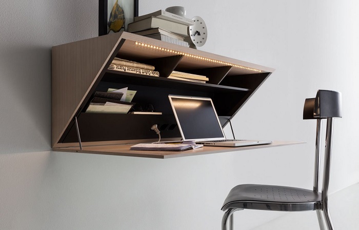 Компактная полка, которая трансформируется в рабочий стол. / Фото: sosedi-online.ru