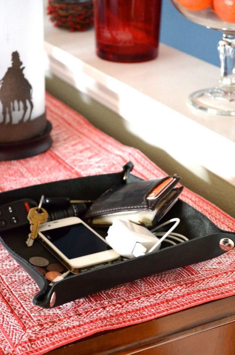 Учитывая, сколько у девушек сумок, клатчей и рюкзаков, совсем неудивительно, что очень часто теряются ключи, наушники, косметика и другие мелочи, которые кочуют из аксессуара в аксессуар. Чтобы не приходилось каждый раз переворачивать дом верх дном в поисках кошелька, поставьте в коридоре красивый поднос и складывайте туда вещи, в которых вы нуждаетесь ежедневно. Положите на него зарядное устройство, карманное зеркало, необходимую косметику, пропуск на работу, кошелек и прочие нужные мелочи. Так вы никогда ничего не забудете, и не придется тратить дополнительное время утром на поиск предметов. Еще один бонус касается генеральной уборки: вы сможете смело исключить из нее пункт наведения порядка на полках и в ящиках, на которых вы обычно искали свои личные вещи перед выходом из дома.