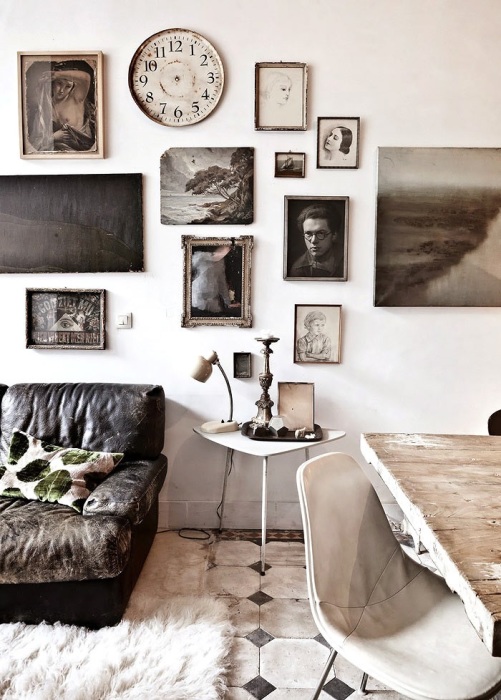Вешать картины и фото лучше не по центру, а в нестандартном порядке. / Фото: interiorizm.com
