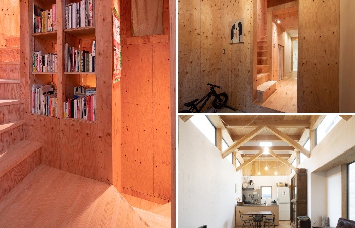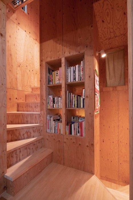 Для оптимизации пространство многофункциональная деревянная лестница проходит по центру строения. | Фото: googleusercontent.com.