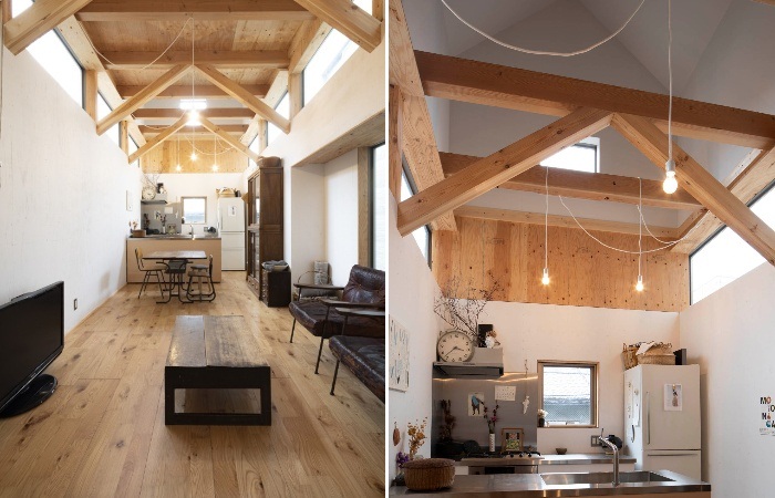 На втором этаже удалось оформить компактную кухню, объединенную со столовой и гостиной. | Фото: designboom.com