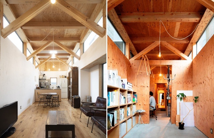 Из-за ограниченности площади земельного участка на улицах японских городов можно увидеть оригинальные дома, которые имеют непривычные очертания. И это немудрено, ведь для того, чтобы увеличить жилое пространство разработчики вынуждены создавать, по меньшей мере, странные конструкции. Так, например, чтобы жилье получилось более просторным одна из архитектурных студий Токио создала дом-башню, передняя часть которой оказалась более узкой, чем задняя.