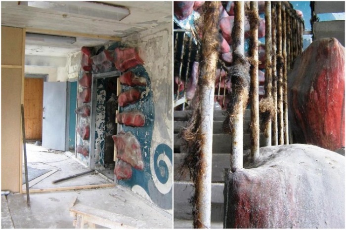 В свое время такой декор был действительно впечатляющим: гигантские осьминоги, охватывающие щупальцами торцы зданий; морские раковины причудливой формы и огромные медузы, затаившиеся на лестничных площадках; яркие морские звезды и кораллы, красующиеся в холлах и столовой; водоросли и очаровательные рыбки, радующие свои разнообразием.