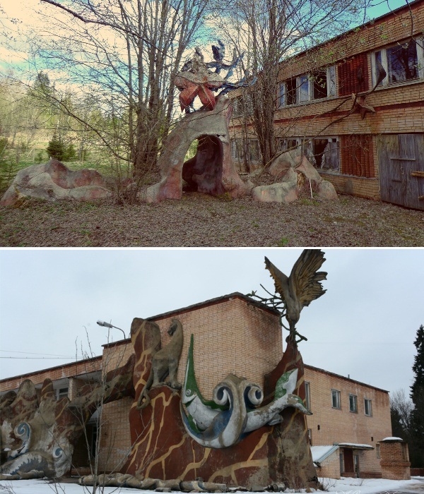 Когда-то этот оздоровительный комплекс для детей сотрудников издательства «Детская литература» снискал славу самого неординарного пионерлагеря СССР. Это случилось благодаря задумке архитекторов, украсивших стены корпусов и всю территорию заведения огромными красочными скульптурами морских обителей.