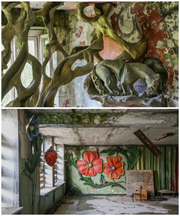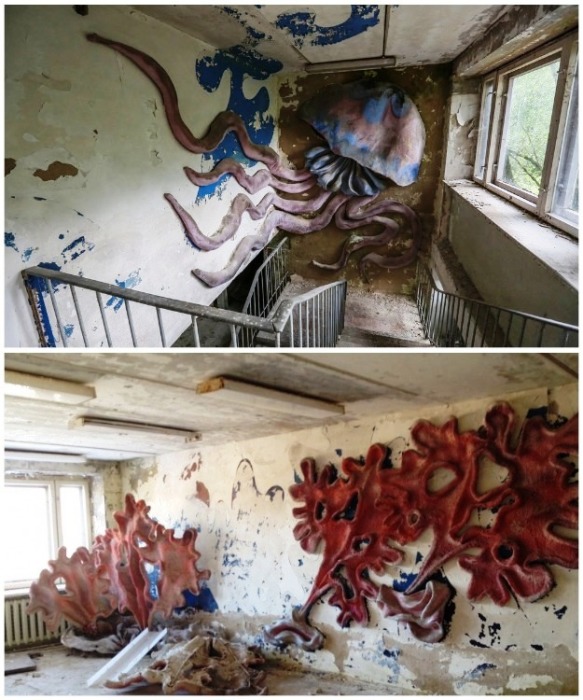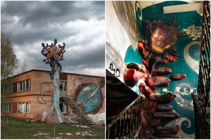 Морские обитатели подстерегают в любом уголке «заброшки» (пионерлагерь «Сказка», Подмосковье). | Фото: kudago.com.