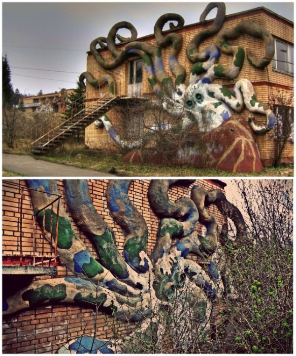 Жуткий осьминог пытается задушить один из корпусов (пионерлагерь «Сказка», Подмосковье). | Фото: places.moscow.