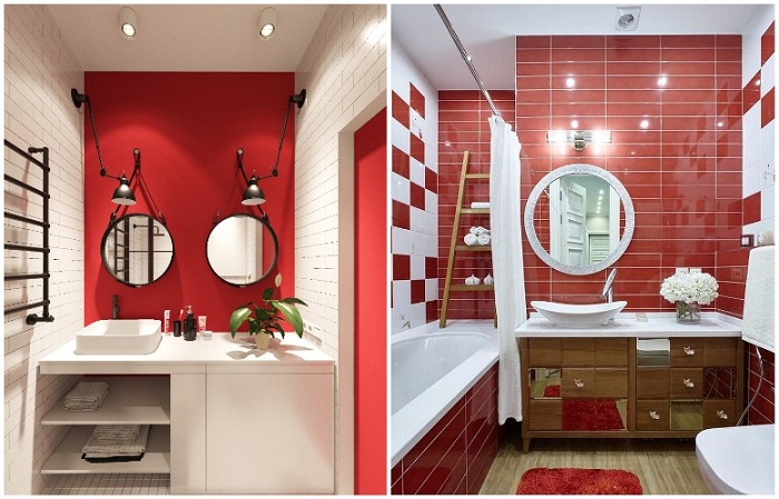 Санузел, оформленный в красном цвете, смотрится стильно