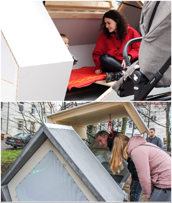 Сами же авторы пилотного проекта иногда демонстрируют капсулу для бездомных в других городах. Простые прохожие с удовольствием испытывают спальный модуль, да и сами разработчики не прочь показать и рассказать, как можно забраться в него и чего нельзя делать, чтобы избежать неприятностей в виде пожара.