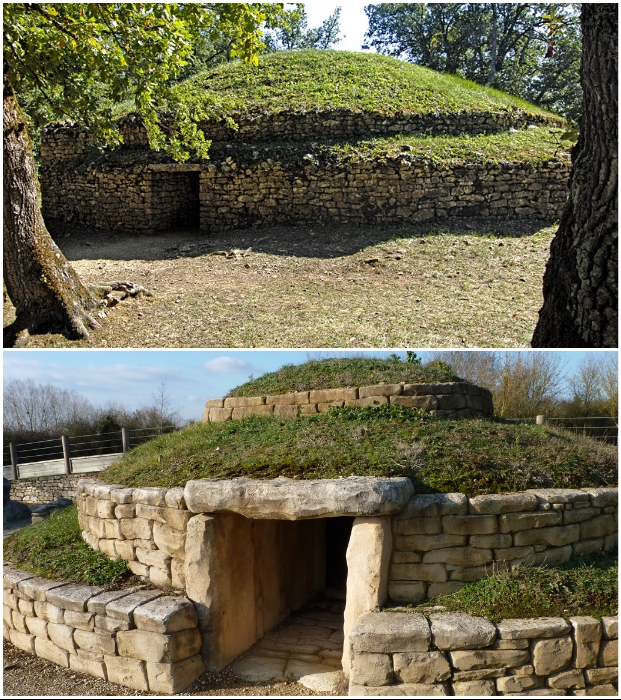 Кладбище Бугон (Tumulus of Bougon), расположенное неподалеку от французского городка Ла-Мот-Сент-Эре, состоит из 5 гробниц эпохи неолита, созданных на протяжении сразу нескольких веков. По этой причине каждый курган имеет свои архитектурные особенности и уникальные находки. На сегодняшний день в погребальных камерах Бугонского некрополя обнаружено более двухсот человеческих скелетов, каменные орудия труда, предметы быта из камня и керамики, элементы украшений, ставшие доказательством того, что в доисторические времена существовало ювелирное искусство.