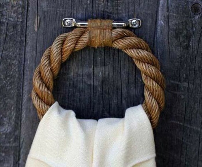 Все знают, что красота отражается в деталях. Именно поэтому вполне можно преобразить внешний вид своей комнаты с помощью веревки. Взяв толстый канат или переплетя несколько более тонких веревок можно добиться потрясающего эффекта: получится эффектный держатель для полотенца или одежды, который не стыдно разместить в любом интерьере. Минимум усилий и замечательный результат.