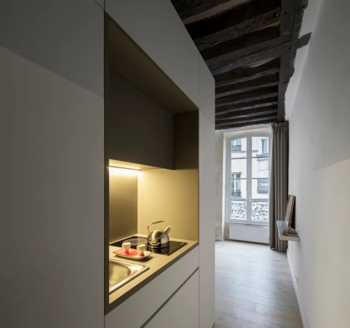 Превращение крошечных площадей в квартиры-трансформеры становится очень популярным, особенно в крупных городах, где стоимость на недвижимость просто зашкаливает. Не стал исключением и Париж, в котором сохранились старинные дома. Учитывая, что в давних постройках есть не только большие апартаменты, но и миниатюрные комнаты для прислуги, то не стало удивлением, что сейчас они нарасхват.