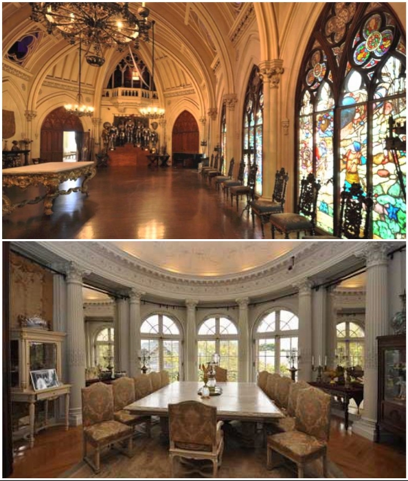 Поскольку идейным вдохновителем всего проекта был супруг, который являлся большим любителем лошадей, не стало удивлением, что весь первый этаж был отдан под обустройство конюшен. Такое расположение дало возможность эксцентричным хозяевам въезжать в парадные двери прямо на карете, а лишь потом подниматься в свои покои, расположенные на нескольких этажах. Учитывая тяготение супругов к показной роскоши, не удивительно, что в их доме имеется 52 комнаты и все обустроено по высшему разряду. Как оказалось, даже стойла для лошадей были облицованы тиком и отделаны серебром.